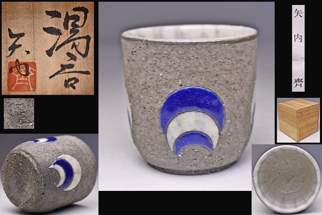 > 矢内斎 ★ 湯呑 ★ 共箱 栞 ★ 坂田甚内氏 加守田章二氏 に師事 ★ 益子焼 ★ 独特なデザインが印象的 ★