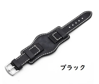 - 【A】ブンド レザーベルト ブラック 20mm 22mm 24mm 牛革 腕時計用ベルト ばね棒付 交換用 厚め アレルギー対策【新品】