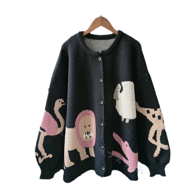 - 春ニット セーター カーディガン 羽織物 暖かい ゆったり トップス チュニック 大人可愛 フリーサイズ ナチュラル 動物柄