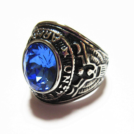 - ステンレス カレッジリング ブルーストーン 11月の誕生石 キュービックジルコニア 指輪リング 19号