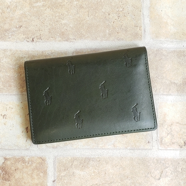 - 未使用 ポロ ラルフローレン ロゴ 型押し レザー パスケース 二つ折り 緑 グリーン POLO by RALPH LAUREN