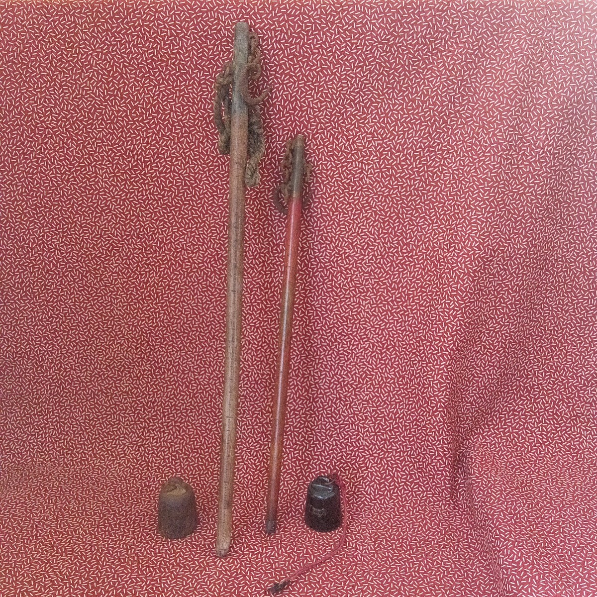 - 中古☆天秤棒 おもり付き 竿秤 はかり 古道具 測定道具 古民具 当時物 昭和レトロ アンティーク 飾り物 置物 コレクション