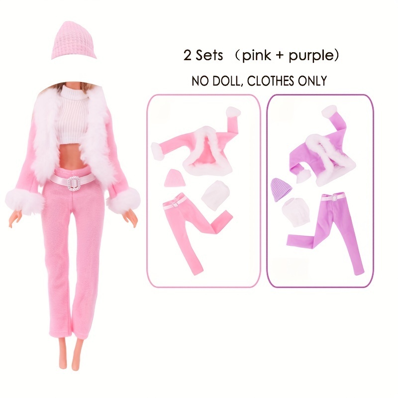 - 2点セット 着せ替え人形 交換衣装 1/6スケール 女性 女の子 上下 レディース ピンク パープル バービー人形サイズ コスチューム t2288
