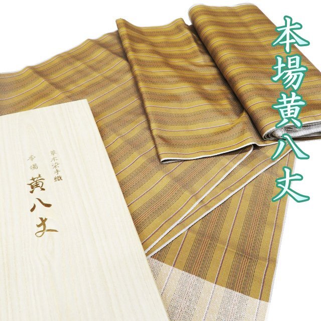 > 特選 本場 黄八丈 反物 着物 未仕立て 新古品 正絹 カジュアル 箱付き 草木染 手織 桑茶色 多色 きもの北條 A1182-2