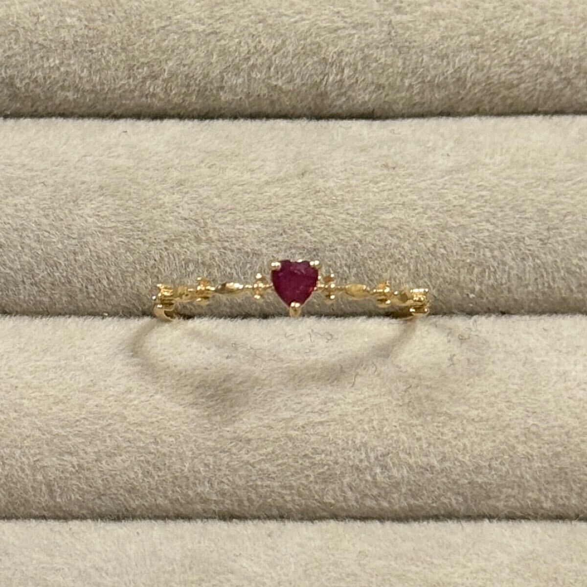 - K18デザインリング 指輪 18金 ルビー ハート カラーストーン 16号