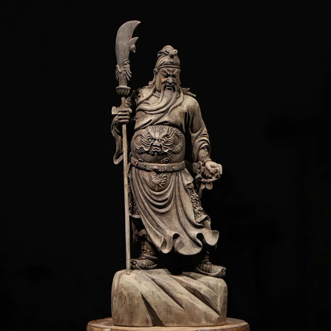 - ▼渡鶴羽▼A5455明時代 楠木 武聖 関公 楠木細工彫刻★仏教古美術★仏像★細密細工★廃寺旧蔵★廃寺買出品