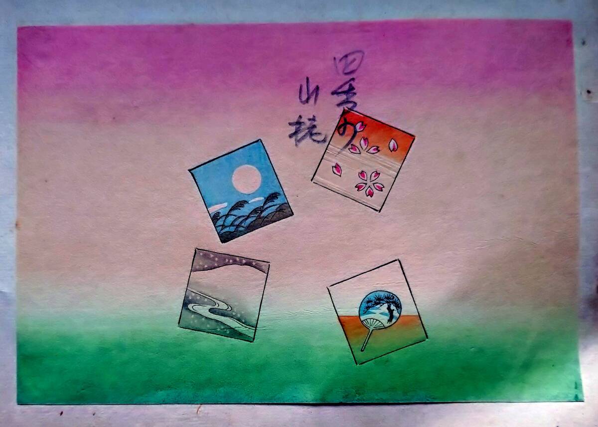 - f25042368〇彩色木版画 ハガキサイズ 四季 石部 錦絵 浮世絵 昭和年代〇和本古書古文書