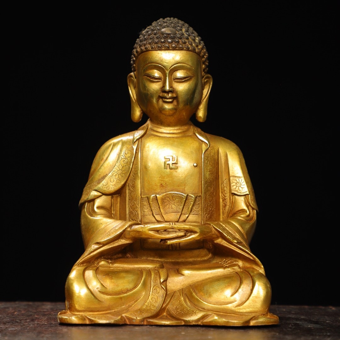 - 【超珍館蔵】銅製 塗金 釋迦牟尼像 仏教古美術 供養品 古賞物 古美術品 稀少珍蔵品