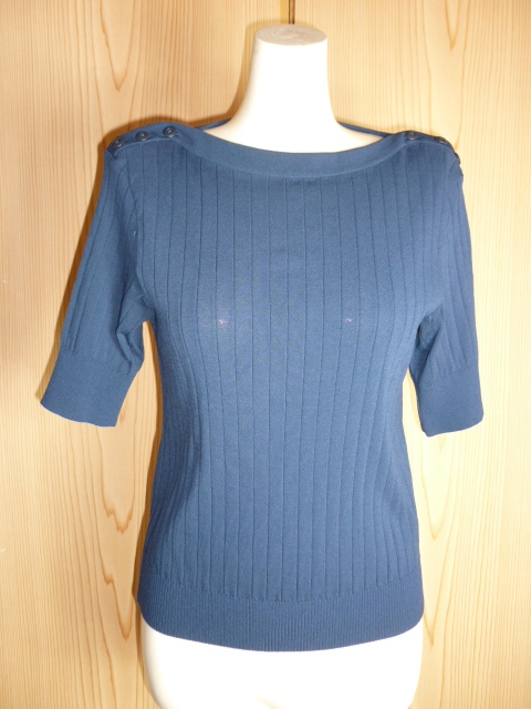 > A'58★超美品★ 23区 (オンワード樫山) ・サイズ 38【肩ボタン・紺・半袖・ニットカットソー(15000円程】★商品詳細は記載文を・・