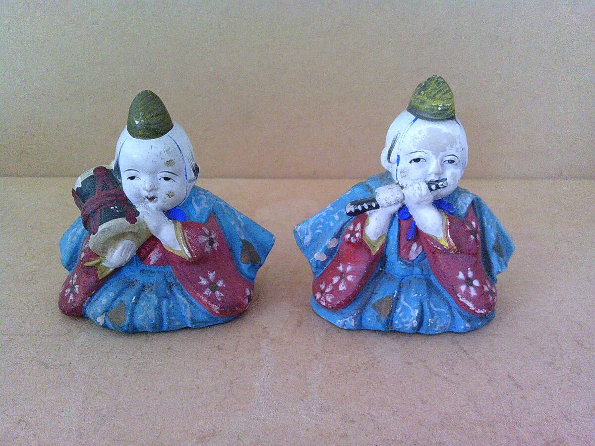 - ■ く-381 焼物 人形 一対 年代物 雅楽 置物 インテリア 飾り 箱なし 単品/約寸:高6.4cm 幅6cm 奥4cm 全重125g