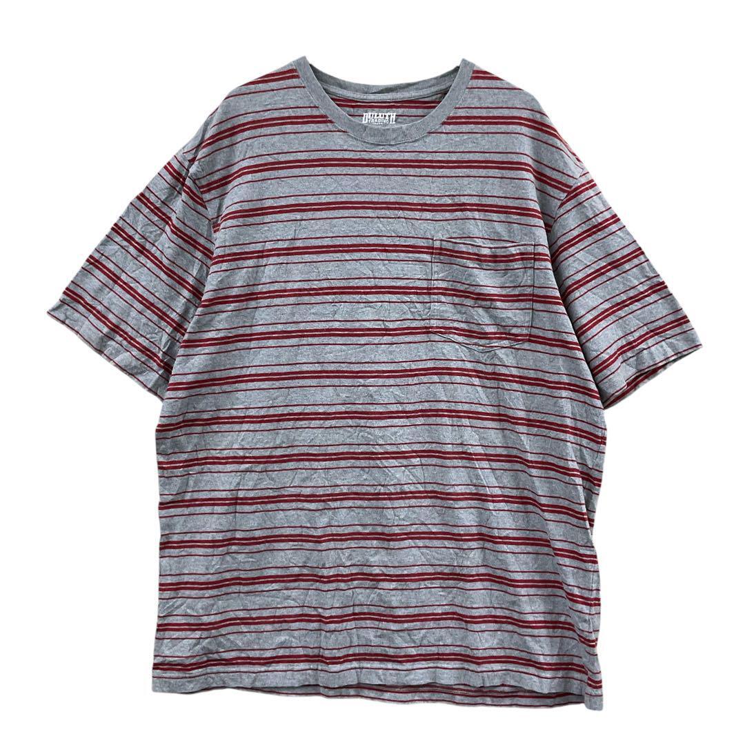 - ダルース・トレーディング メンズTシャツ 灰色 L ボーダー柄 古着【3488】