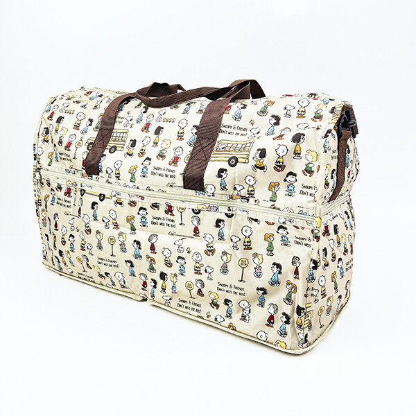 - スヌーピー バスストップブラウン 折りたたみボストンバッグ(L) トラベル SNOOPY