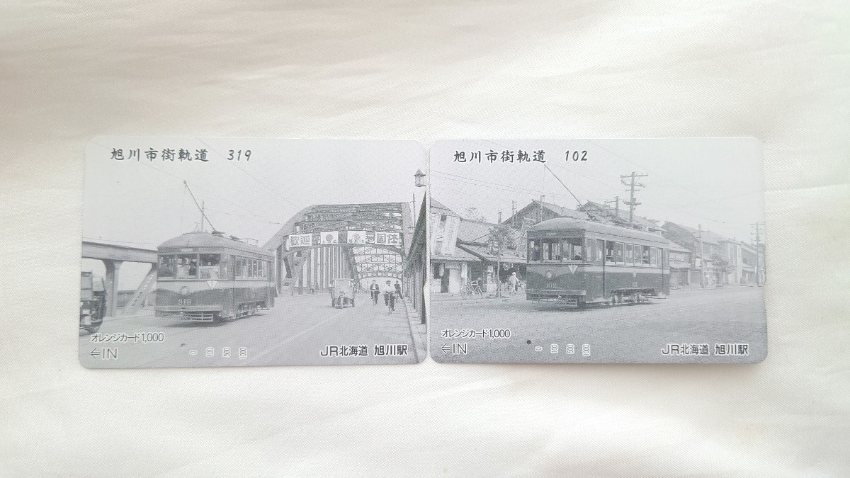 - ●JR北海道●旭川市街軌道102・319●記念オレンジカード1穴使用済み2枚一括