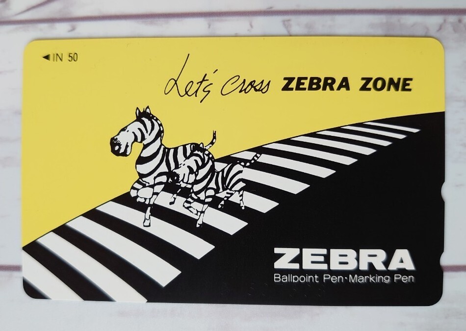 - 非売品〜ゼブラ(筆記具メーカー)テレフォンカード 未使用 横断歩道 シマウマ 可愛いデザイン