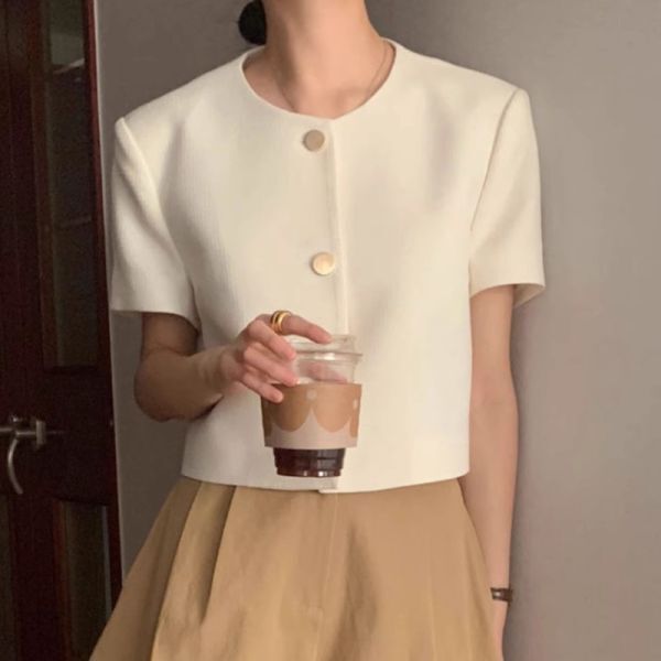 - レディース トップス ブラウス ジャケット ショート丈 半袖 FY89
