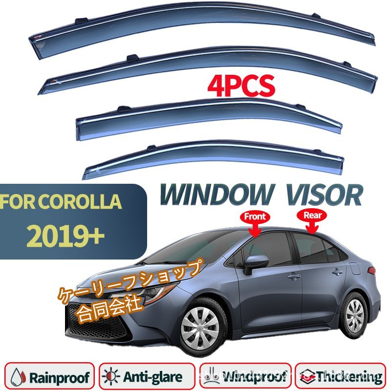 > に適用 2020年トヨタ カローラ4ドアセダン用 ,雨除け 換気 ドアバイザー 半透明ブラックステンレス製光沢ストリップ 社外品 【4枚 】