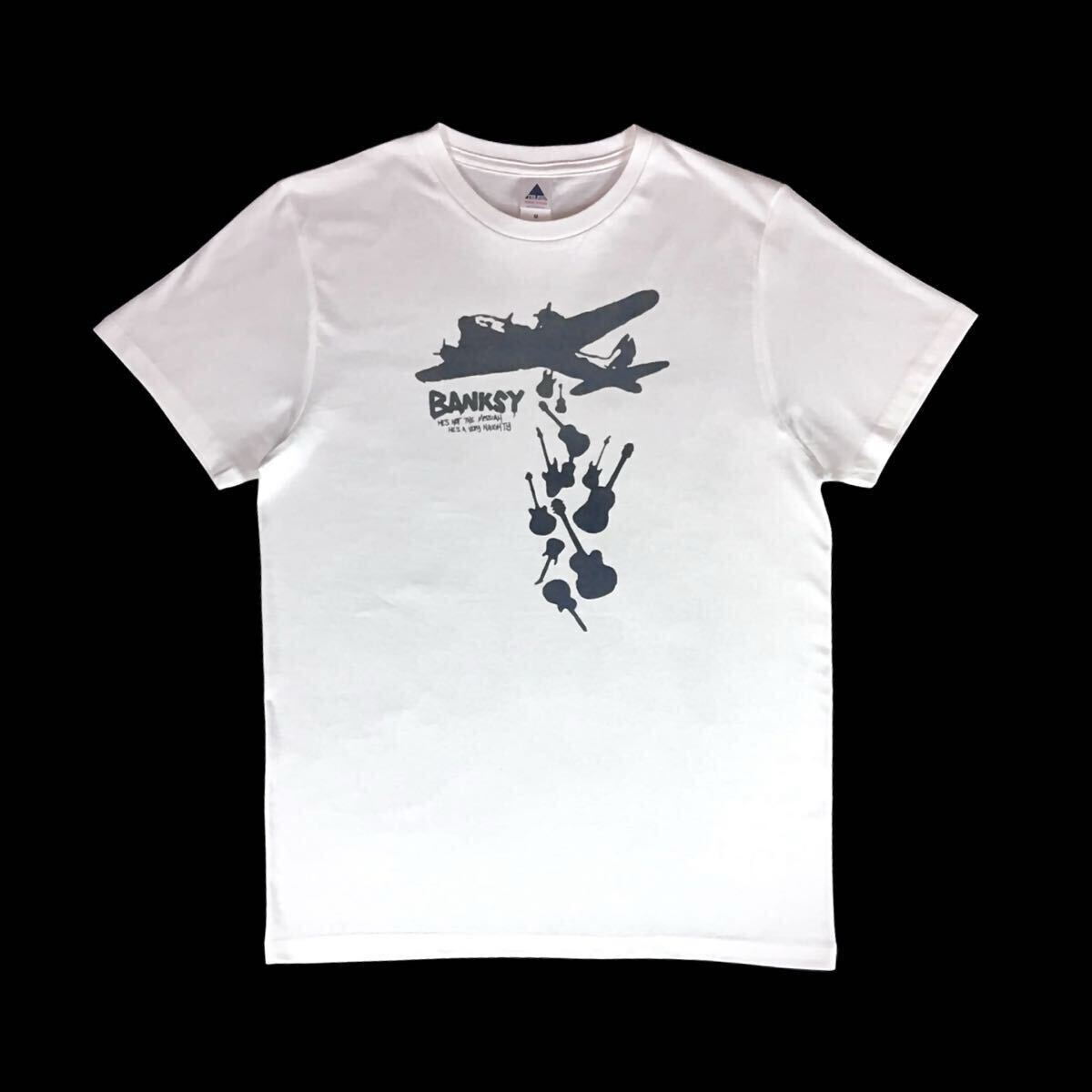 > 新品 BANKSY バンクシー 戦闘機 ギター 爆弾投下 爆撃 ブリストル ストリートグラフィティ ウォール アート Tシャツ オーバーサイズ XL(LL)