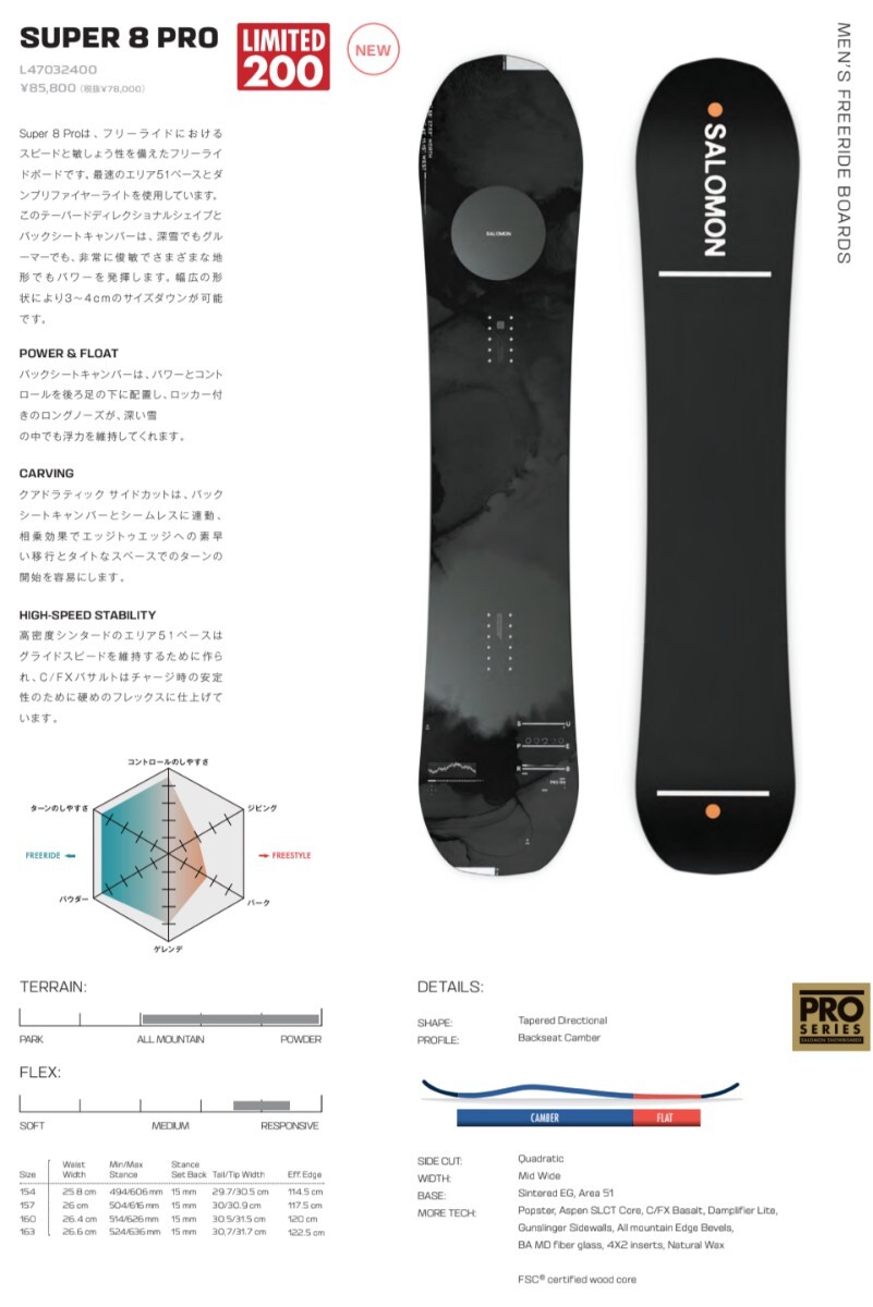 - 中古 美品 サロモン SALOMON SUPER 8 EIGHT スーパー エイト Pro プロ 限定 モデル 上級 カービング ハード 競技 テクニカル LTD ボード 板