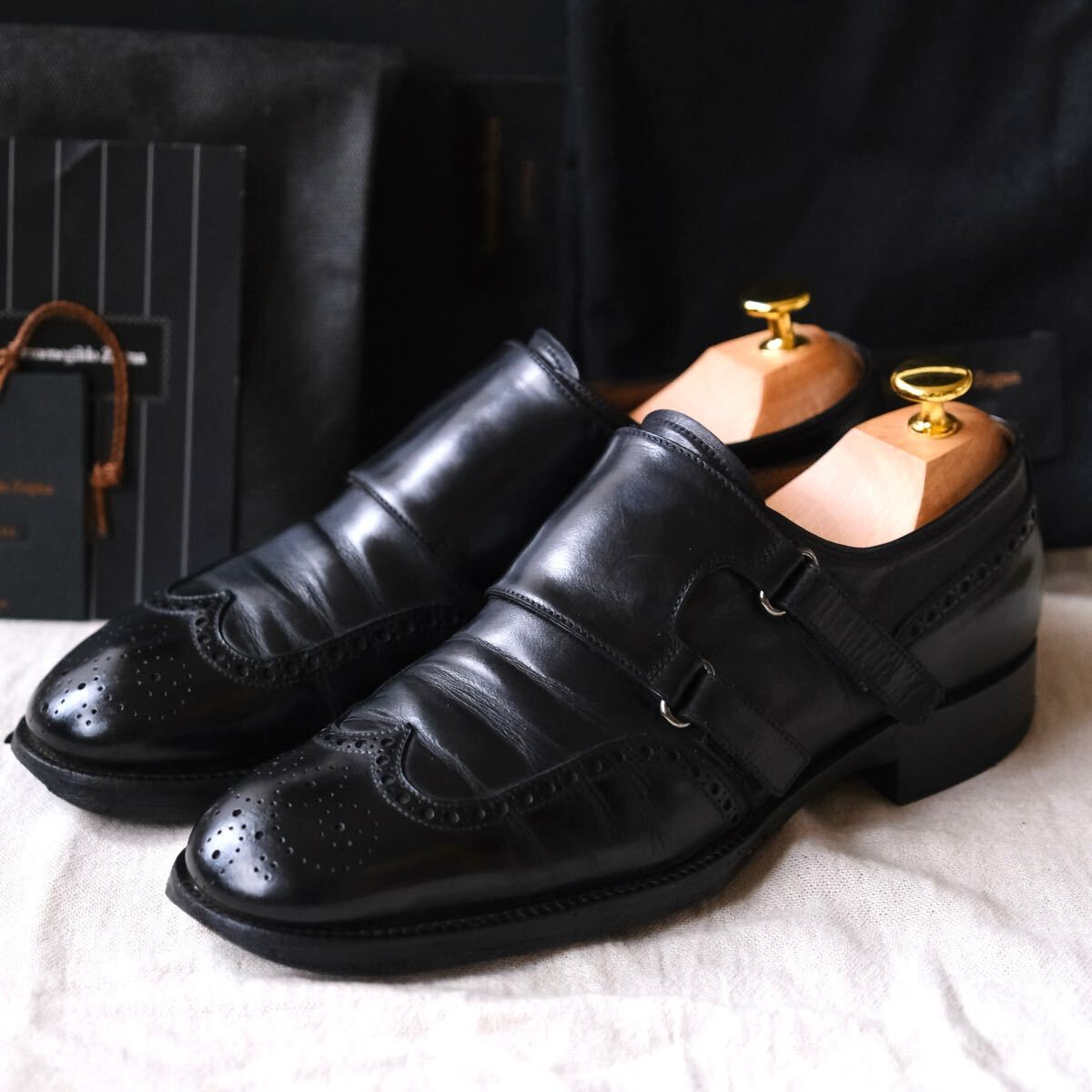 - Ermenegildo Zegna coutureベルクロダブルモンク黒6E
