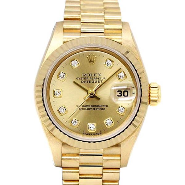 > ロレックス ROLEX デイトジャスト 69178G 10Pダイヤ シャンパン文字盤 W番 K18YG レディース腕時計 自動巻き 26mm 金無垢 73.4g 女性