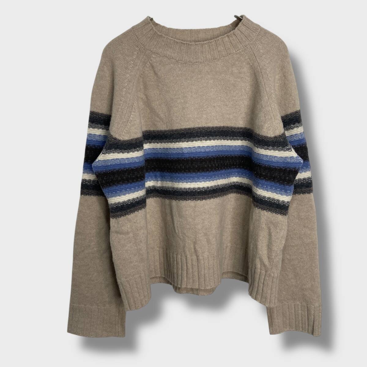 - 送料無料☆MaxMara☆マックスマーラウィークエンドライン☆ボーダー柄モックネックセーター☆ボーダーニット☆ベージュ☆レディースL☆D25M
