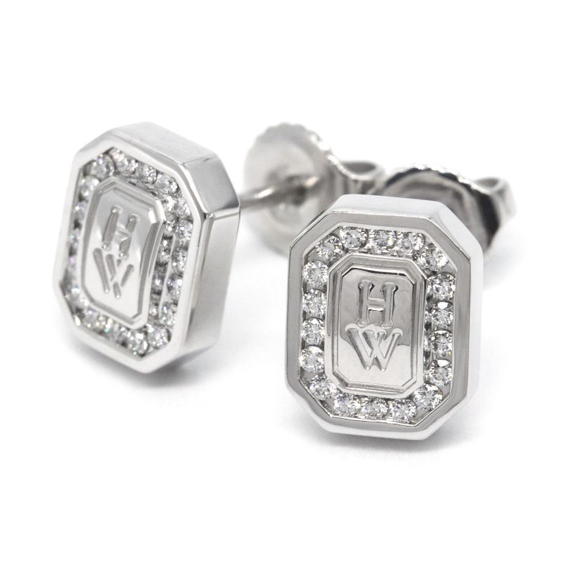 - ハリーウィンストン ロゴピアス K18WG ダイヤモンド ロゴイヤリング ダイヤピアス 両耳用 ホワイトゴールド 地金約5.5g 中古 送料無料