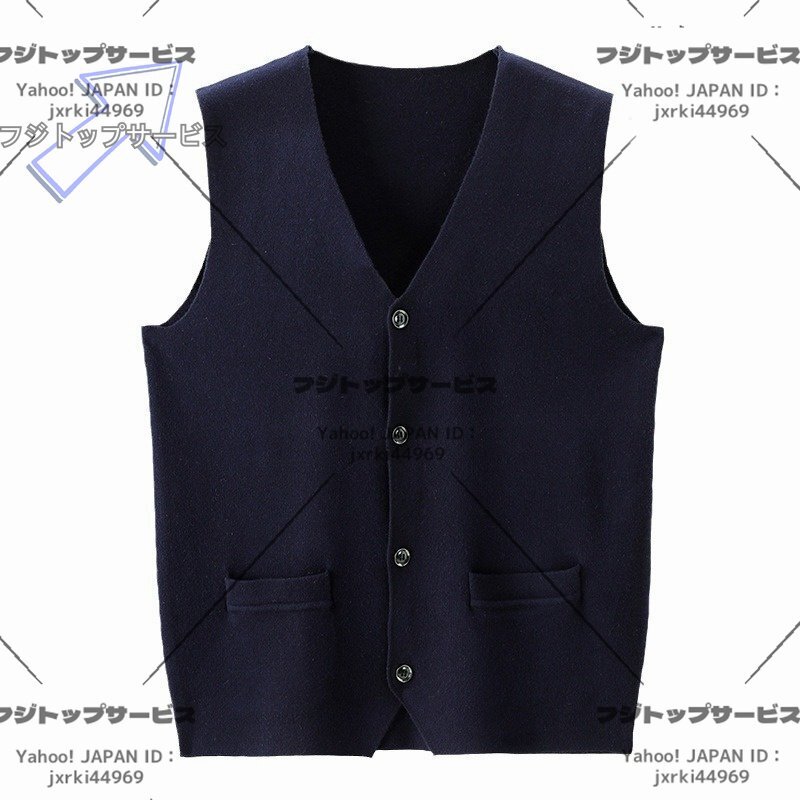 - 人気品 ウール混 ニットベスト チョッキメンズ 秋冬 厚手 カジュアル Vネック ニットセーター/紺