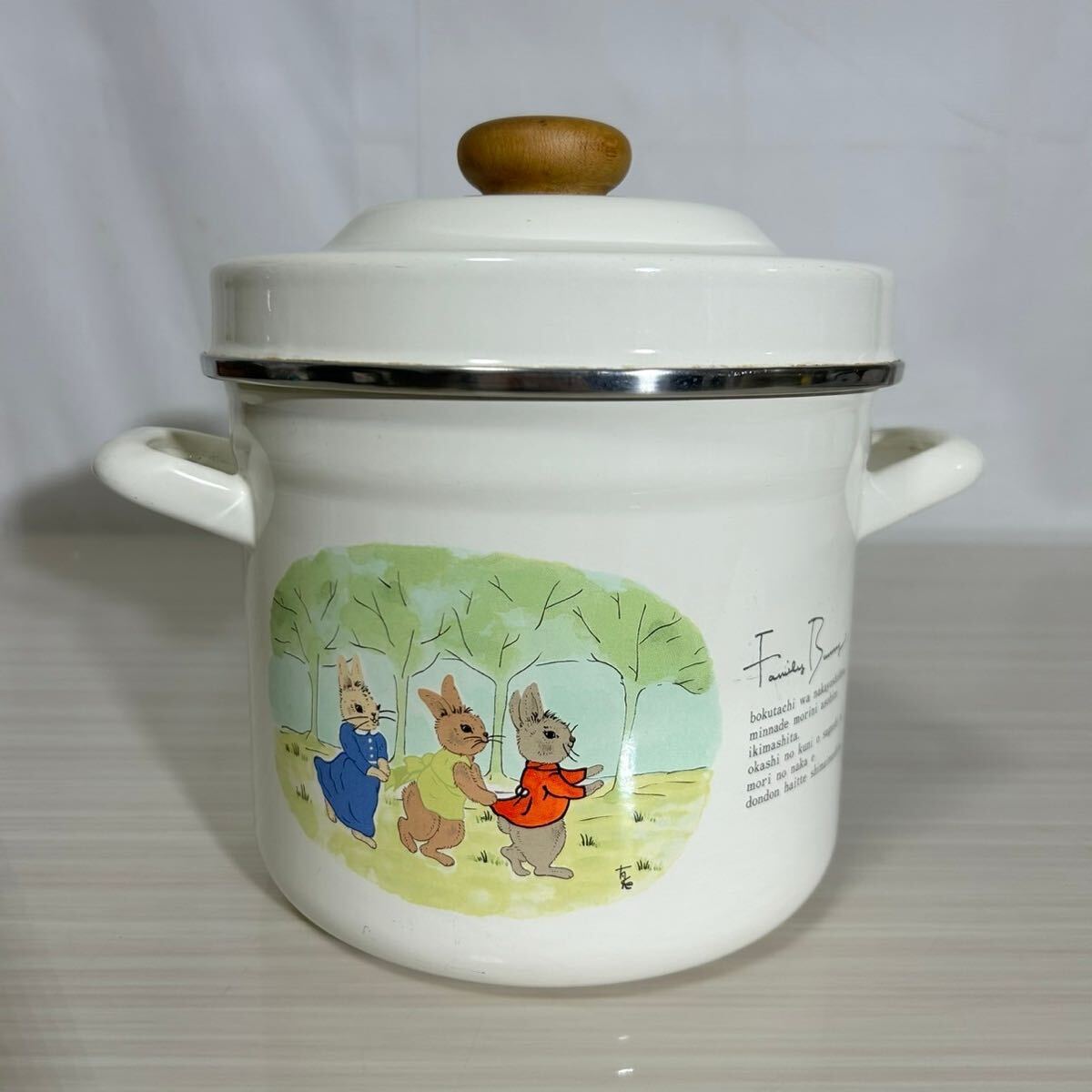 - Y597/江尻ホーロー ホーロー鍋 18cm 両手鍋 ファミリーバニー 昭和レトロ アンティーク ヴィンテージ ストッカー 保管容器 シュガーポット