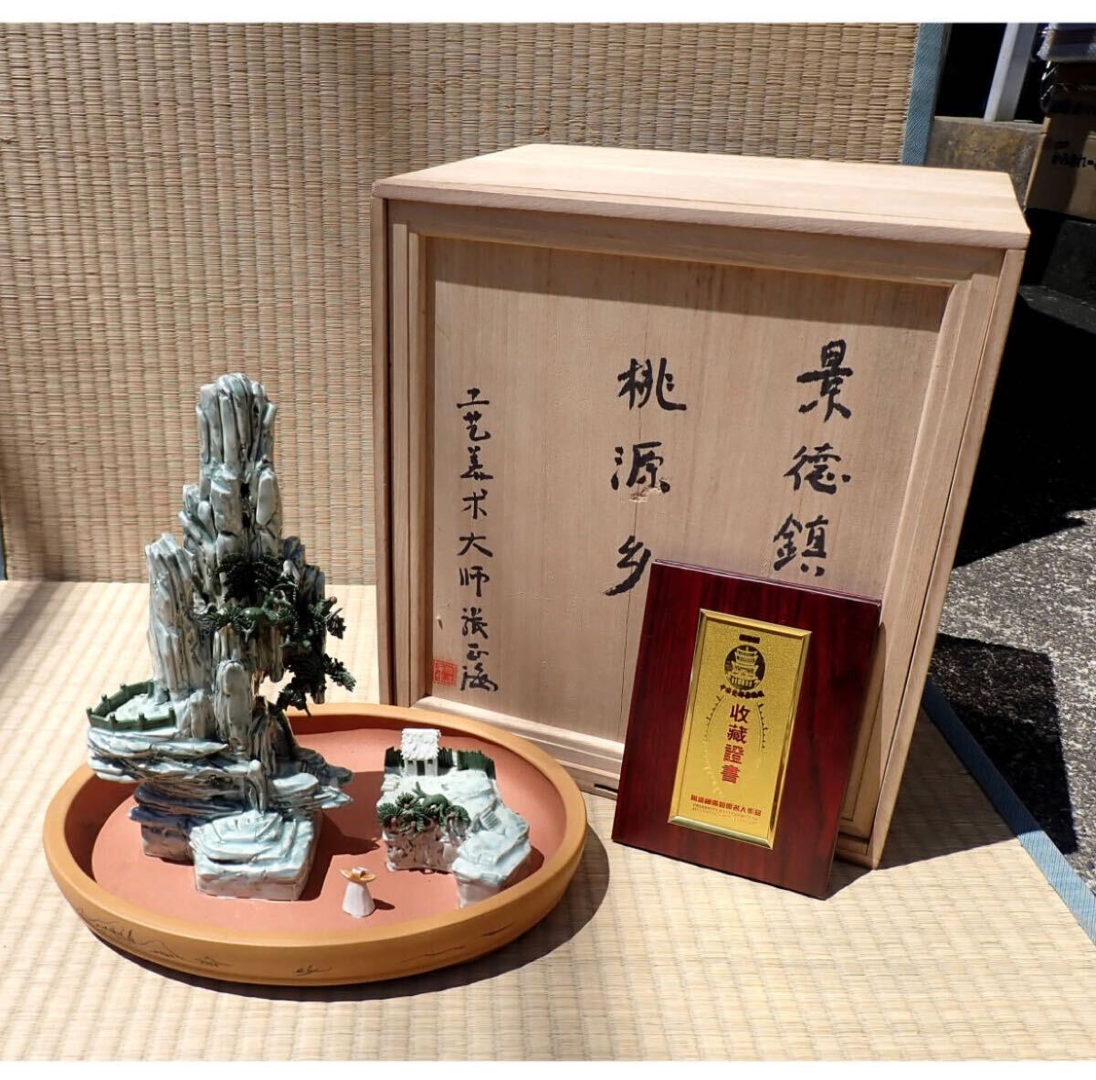 - 中国美術 置物 張正海作 景徳鎮 桃源郷 陶磁器盆栽