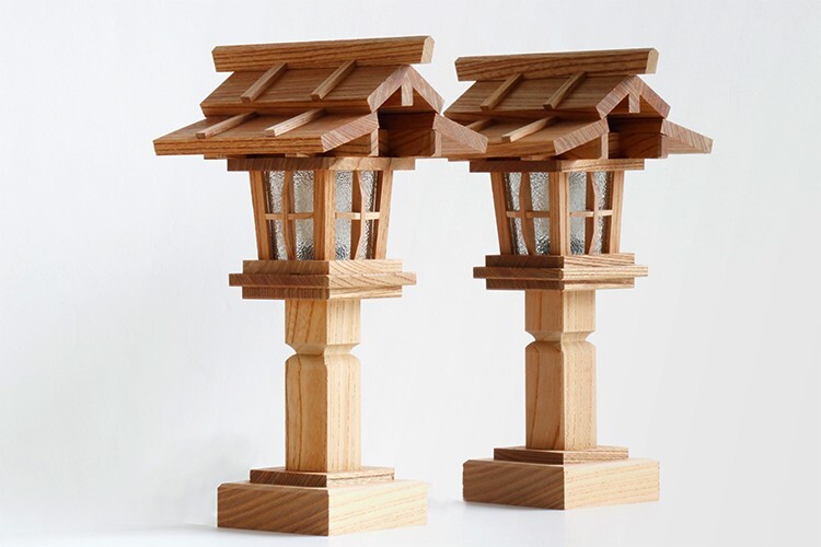 - 威風堂々・本けやき 欅 ■ 灯籠 二段屋根■ 電装式 1対 ■ 高さ23cm ■ 神棚 祖霊舎用 ■ 灯篭 春日灯篭 灯籠 燈籠 燈篭 灯ろう コード式
