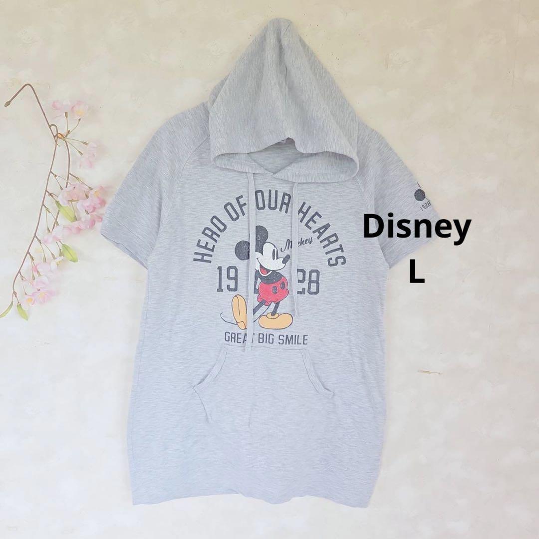 - ディズニー Disney 半袖パーカー【L】ミッキー プリント グレー