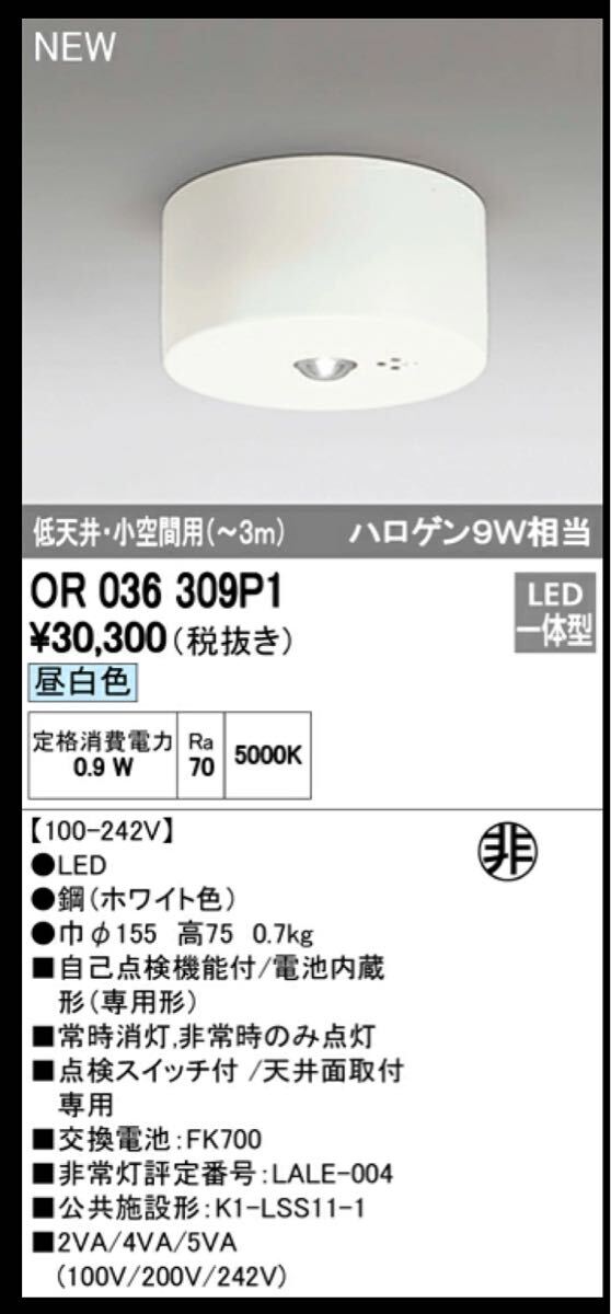 - 【2247】《新品》ODELIC オーデリック照明器具OR036309P1 低天井・小空間用