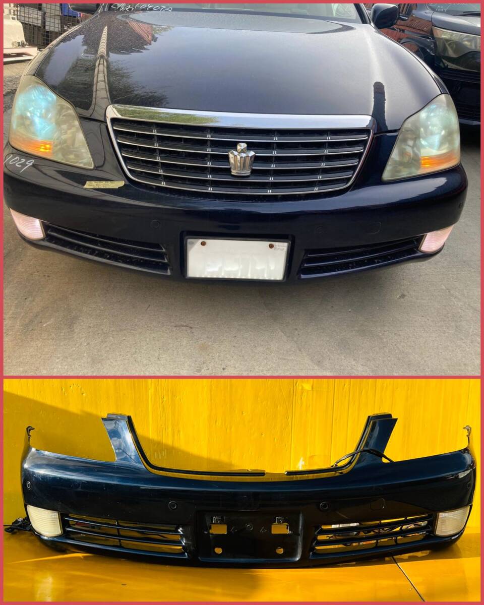 > ZT-2993] 純正トヨタ クラウン ロイヤルサルーン GRS183 フロントバンパー 4 コーナーセンサー + CATZ HID フォグランプ付き)色:8P8