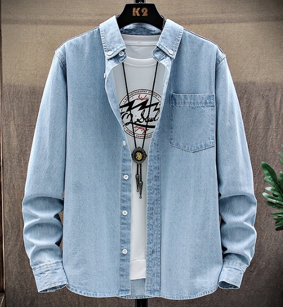 - 新品 綿製 生地良い シンプル オシャレ デニムシャツ メンズ 長袖 ワークシャツ カジュアル アウター スリム /XL