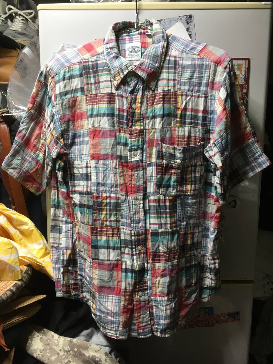 > 2505インド製THE BAGGYバギーS/S半袖パッチワークB/Dボタンダウン チェックシャツLマルチCRAZYクレイジー パネル ショール