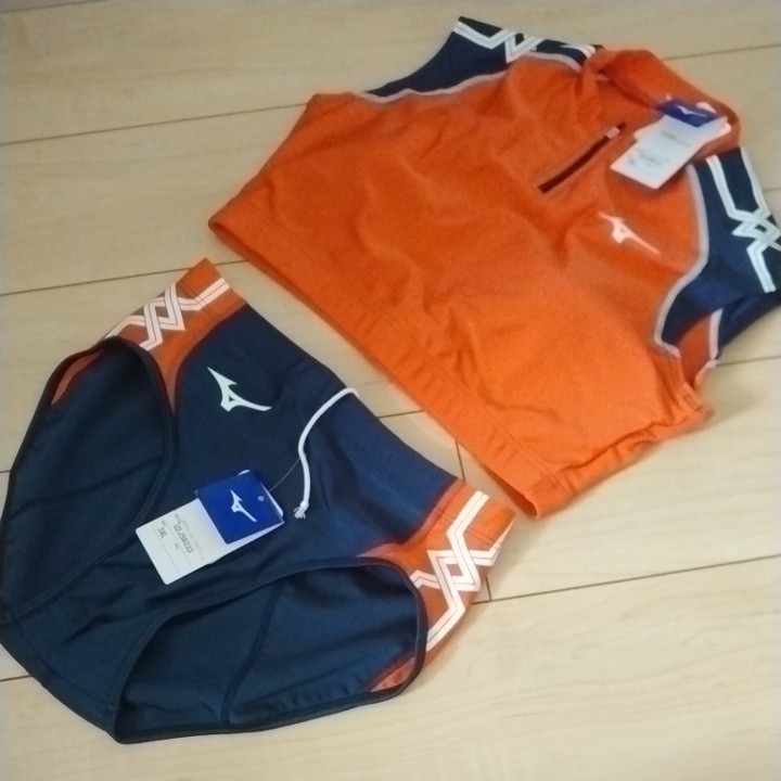 - 新品・3XL・ミズノ・陸上ユニフォーム・上下セット・上・オレンジ×ネイビー×オレンジ×ホワイト・下・ネイビー×オレンジ