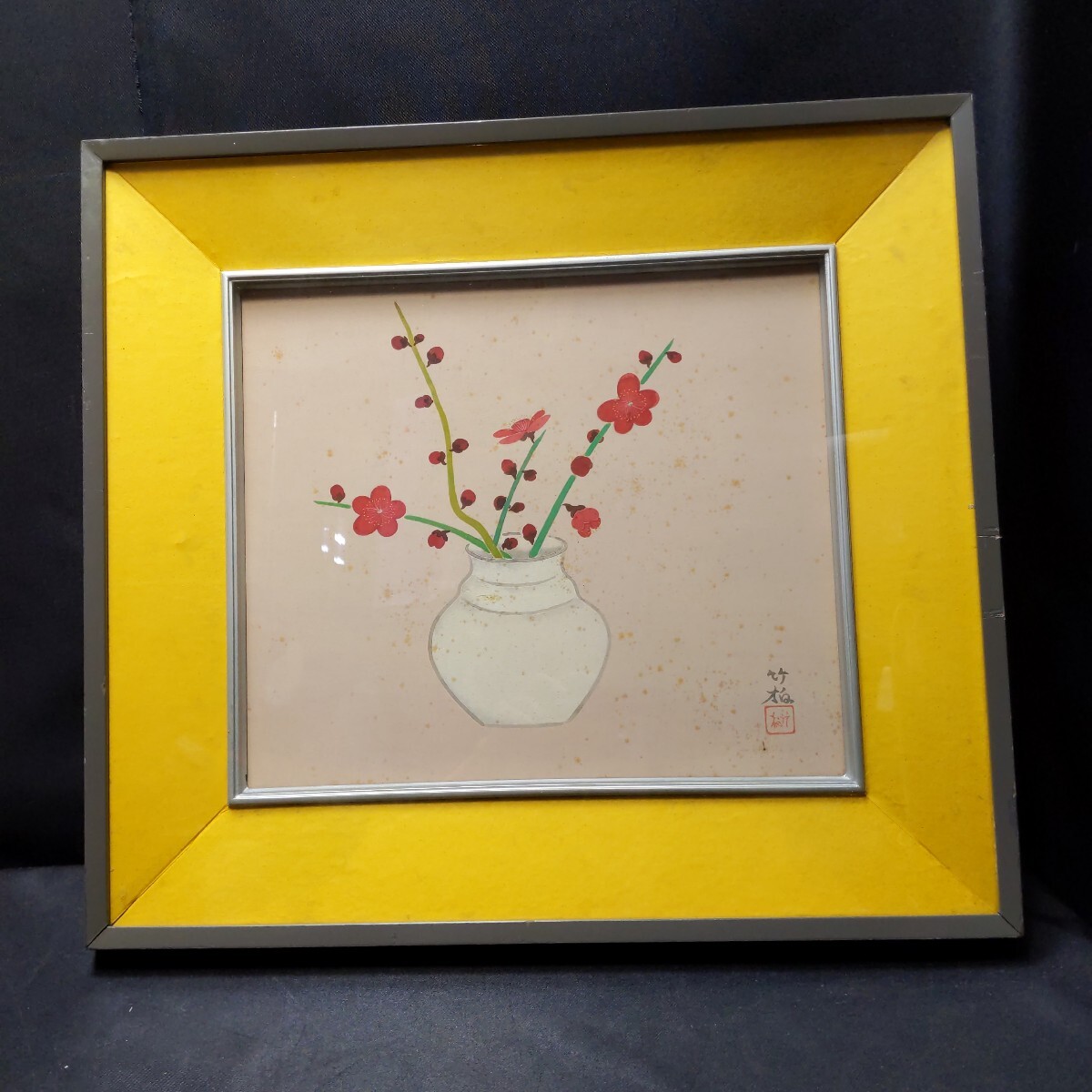 > y468 真作 日本画 鈴木竹柏 額装 内枠サイズ 38.5×44cm 額サイズ 56.5×62.5cm 真筆 汚れ多数あり