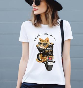 > Tシャツ レディース 半袖 猫柄 綿100% イラスト シンプル ネコ ねこ トップス (3XL, nekorider)
