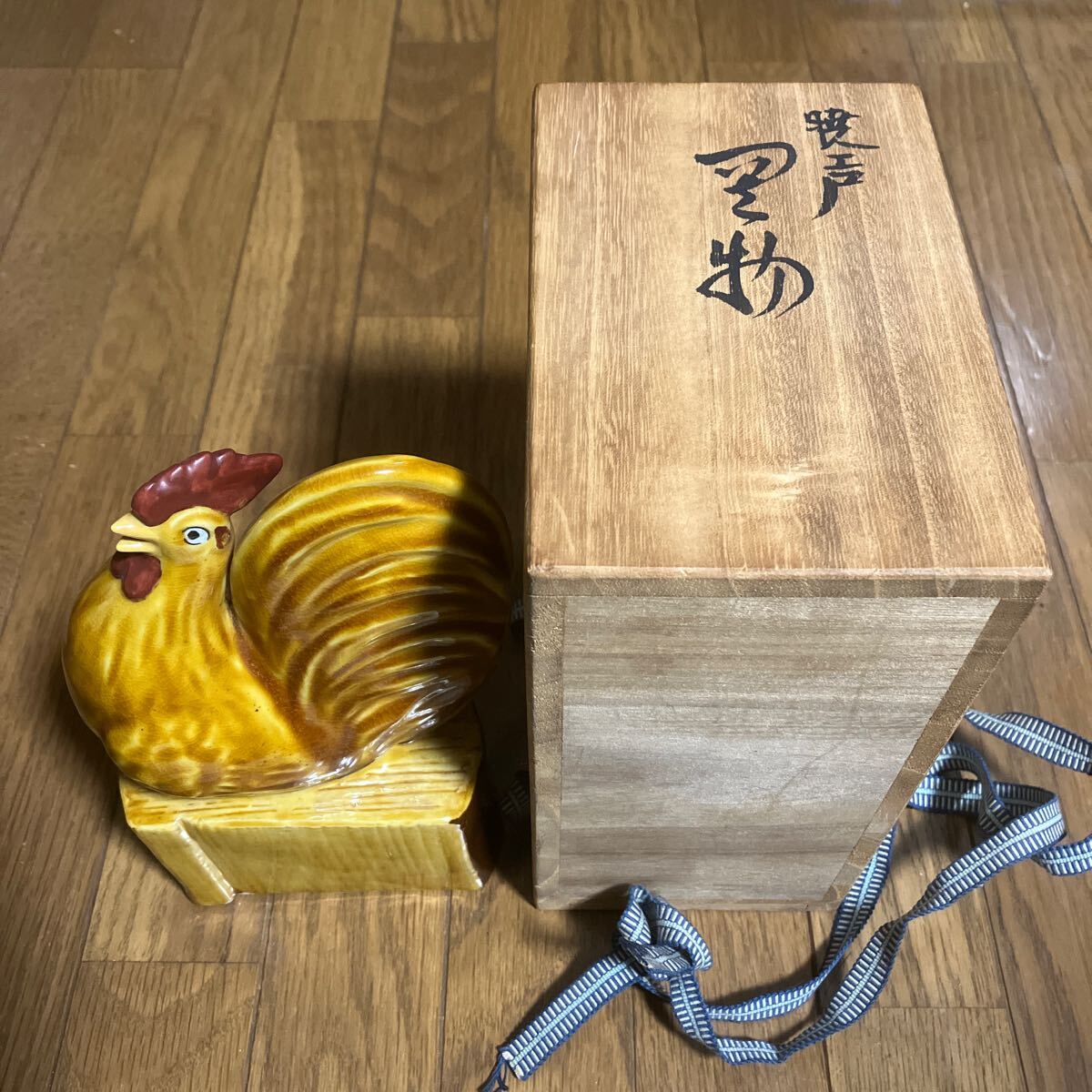 - 070805 保管品 置物 九谷焼 浅蔵五十吉 鶏 函付