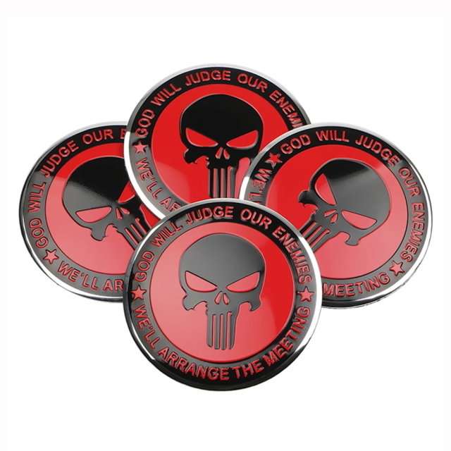 > PFM スカルデザイン ホイール センターキャップ レッド 56mm 4枚セット アルミ製 ステッカー ドクロセンターキャップステッカー高耐久性
