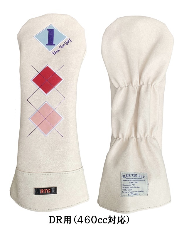 > ■1オークション【DR-オフホワイト・ブルー】ブルーティーゴルフ 【アーガイル - クラシックモデル】ドライバー用ヘッドカバー 送料無料