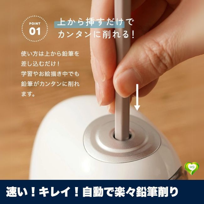 - 【速い!キレイ!自動で楽々鉛筆削り】電動鉛筆削り 電動シャープナー 高速切削 電池 USB コンパクト 軽量 えんぴつ削り 人気 おすすめ