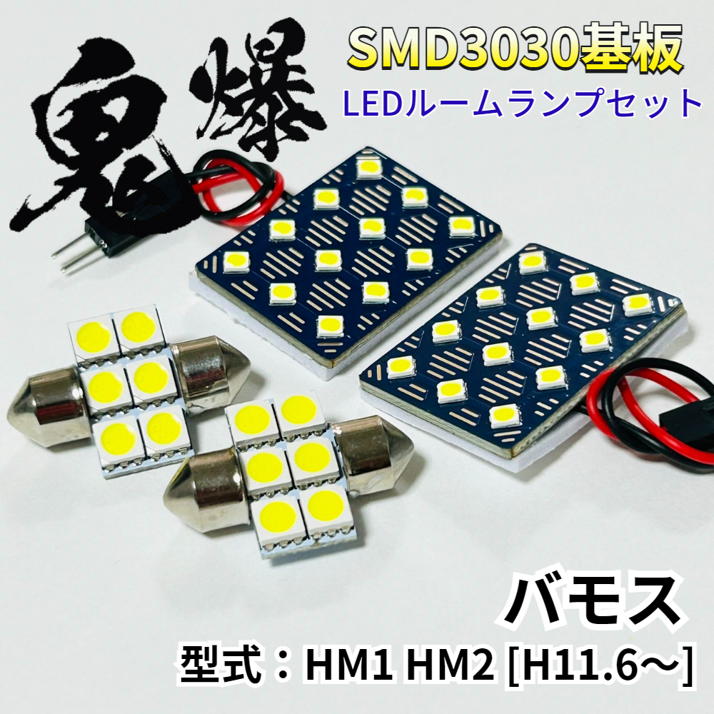 > バモス HM1 HM2 [H11.6~] ホンダ LED ルームランプ T10 鬼爆基板 SMD3030 ルーム球 室内灯 車内灯 パーツ 車検対応