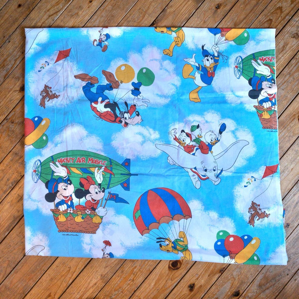 - USAヴィンテージ ベッドシーツ Disney ディズニー リメイク生地 素材 総柄 ミッキー ミニー フラットシーツ アメリカ仕入 B2612