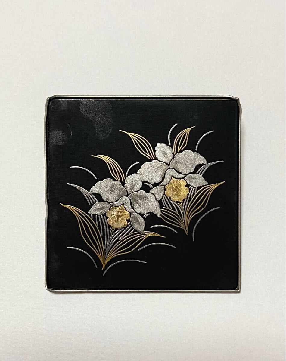 - ★肥後象嵌★ブローチ★帯留め★昭和★レトロ★アンティーク★コレクション★伝統工芸★金象嵌★純金★銀象嵌★花柄模様★象嵌細工★
