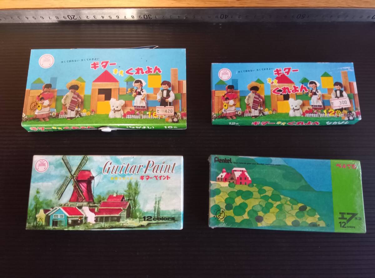 > 25050414 ギターネオくれよん・ギターペイント・ぺんてる絵具セット 未使用品・未開封品・使用品セット くれよん 絵の具 セット 画材