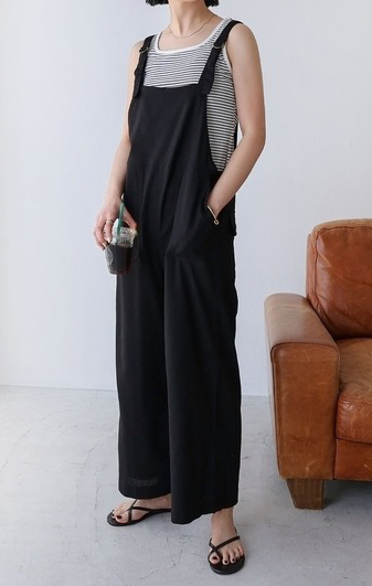 - リネン混ワイドベイカーサロペット and Me オールインワン ブラック S レーヨン 美品