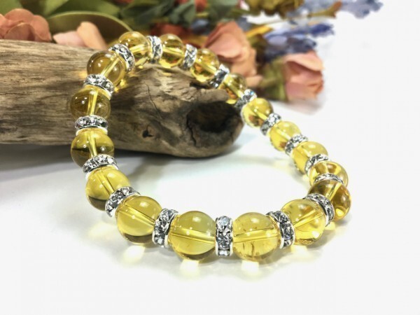 > シトリン パワーストーン ブレスレット 天然石ブレス 10mm メンズ・レディース (シルバー) 開運 浄化 数珠ブレス ☆