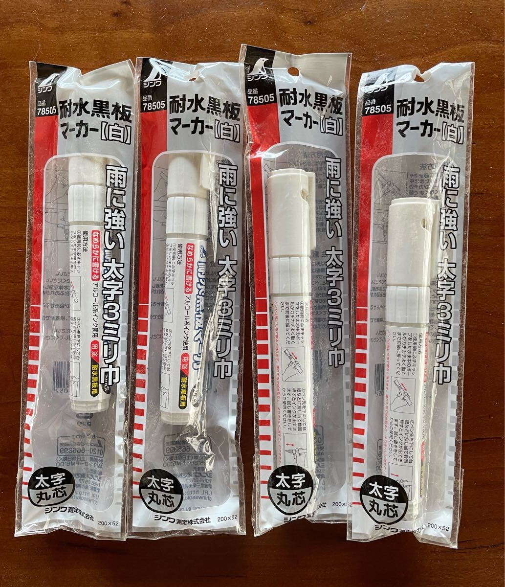 - 4本セット シンワ 耐水黒板マーカー 白 太字 丸芯 78505 黒板 マジック