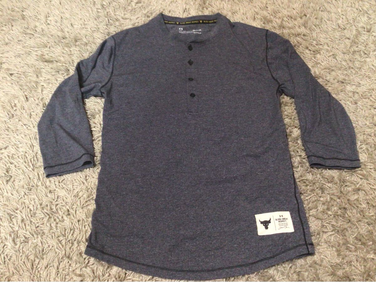 > アンダーアーマー プロジェクトロック UNDER ARMOUR THE PROJECT ROCK 5部袖? ヘンリーカットソーシャツ グレー HEATGEAR ヒートギア SM